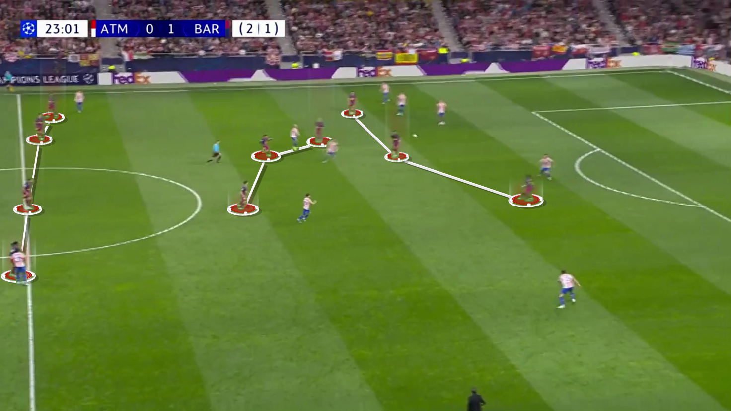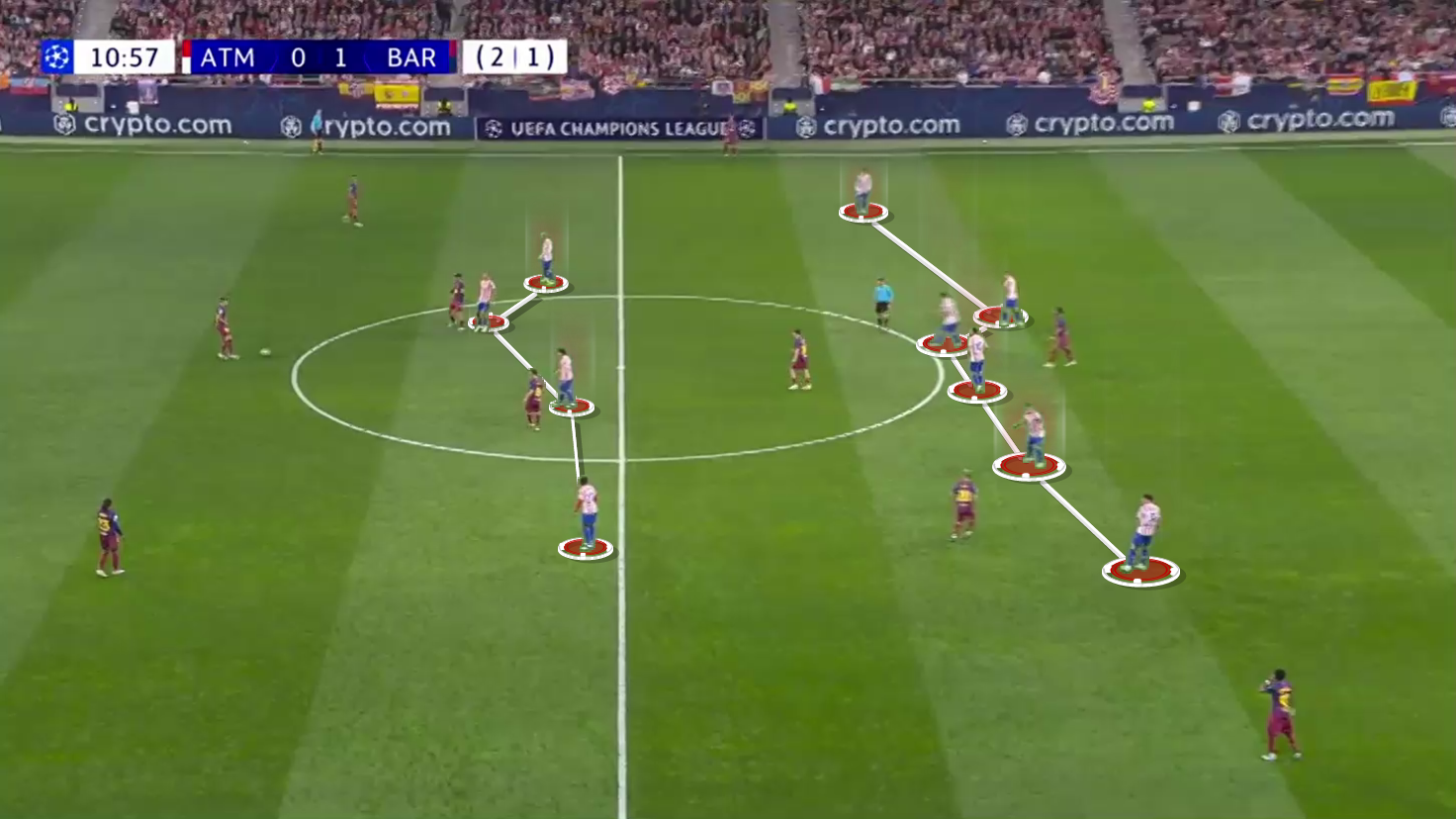 The aggregate score was remarkably levelled in the 24th minute, barely sixty seconds after the tactical snapshot captured in Figure 1, when Olmo slipped a pass through to Ferran Torres.
