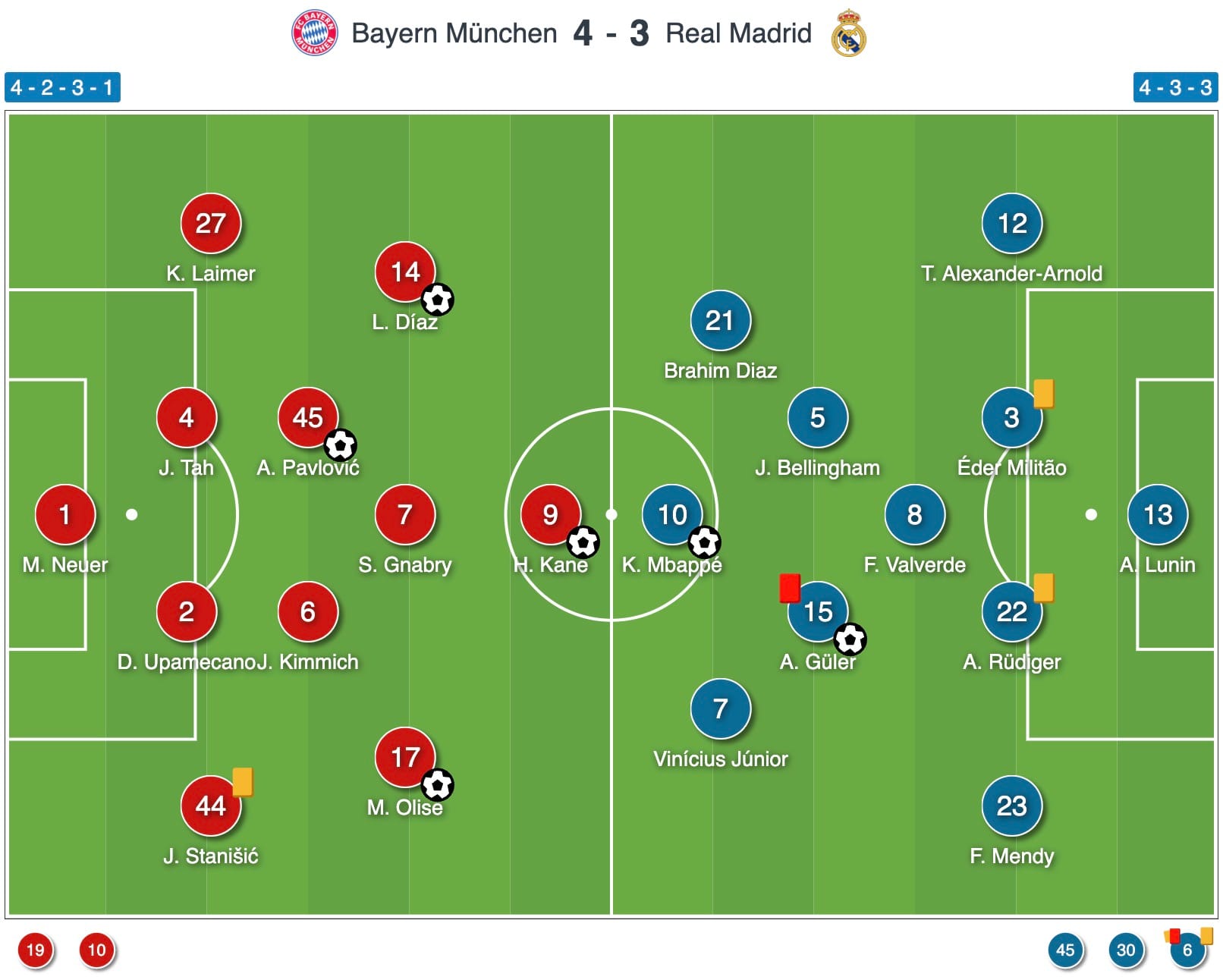 Bayern Munich Vs Real Madrid Lineups & Formations