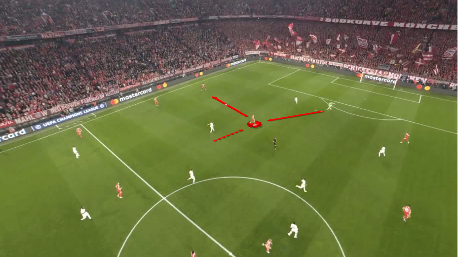 A key reason for this was getting easy access to the space behind Bayern’s pressure.