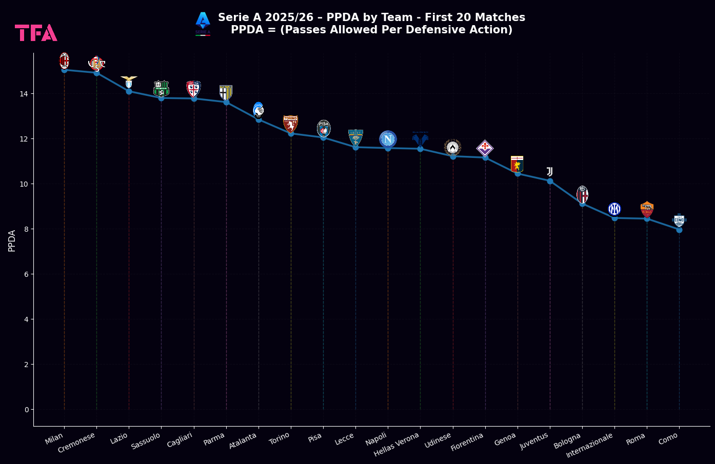 Serie A 2025/2026 PPDA First 20 Matches