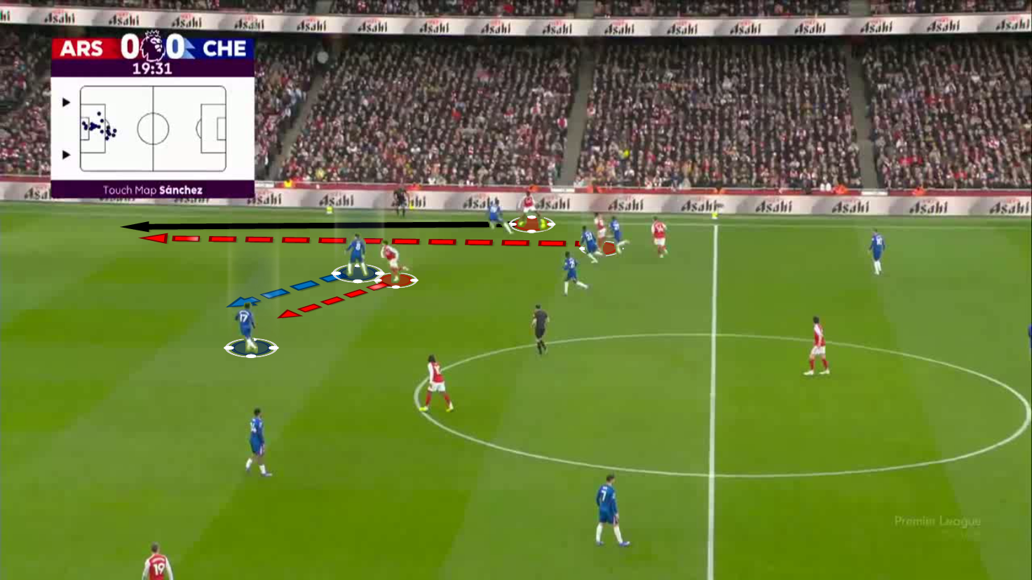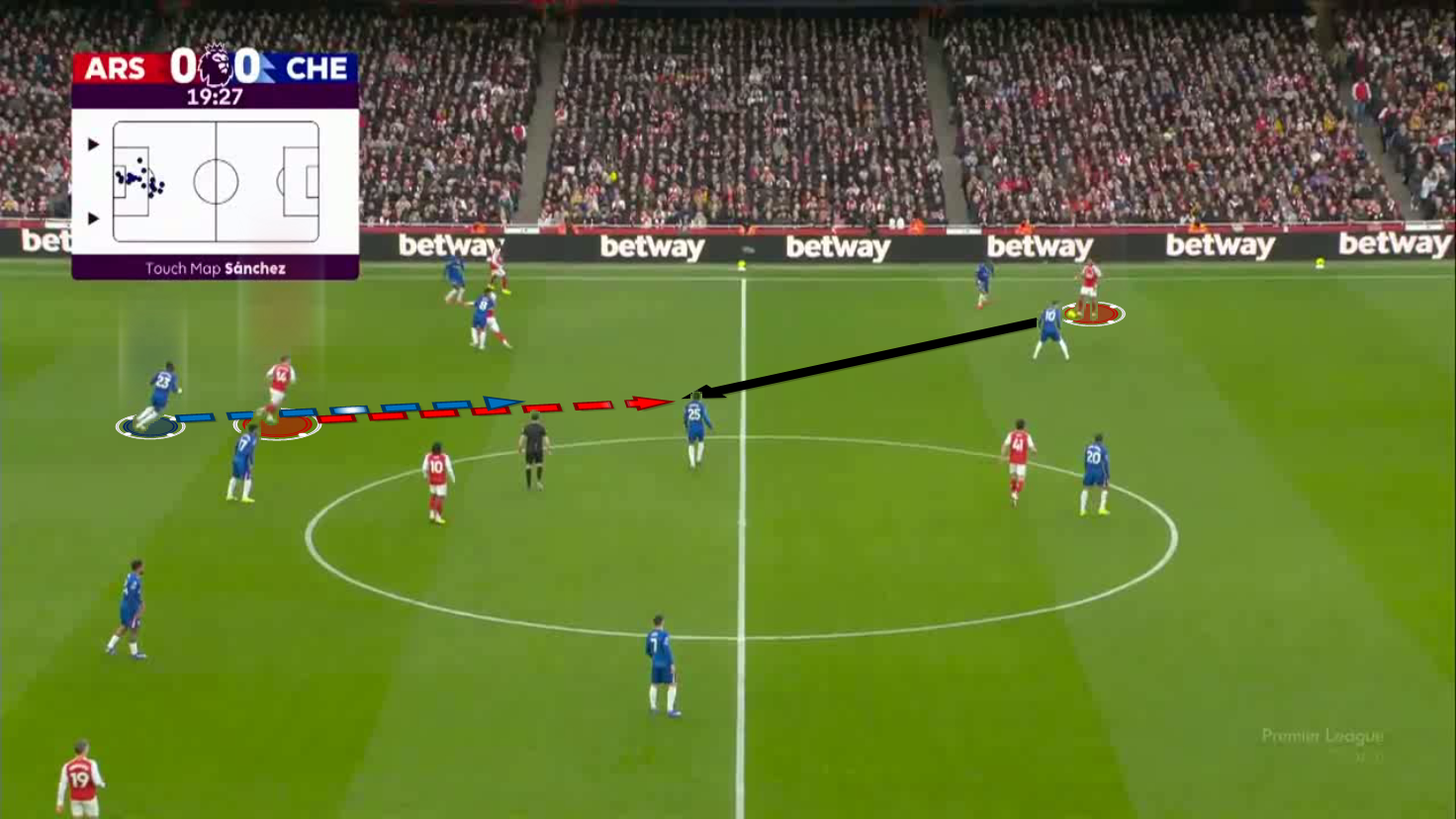 Arsenal’s midfield runner was cleverly physically blocked by a Chelsea central midfielder.