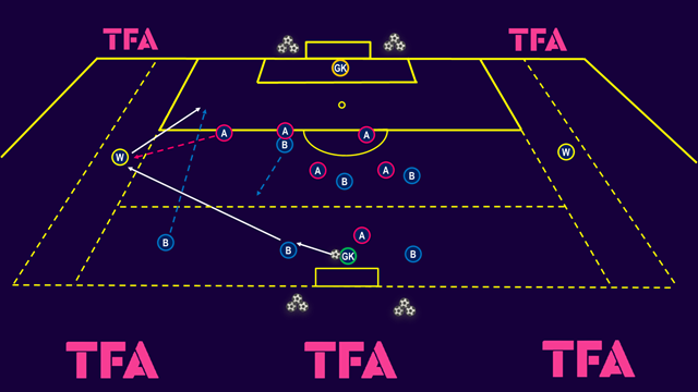 This drill-like exercise allows coaches to embed specific movements that can be used to create space behind the opposition’s backline.