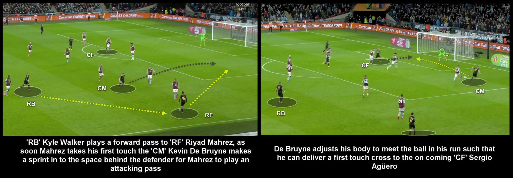 Observing the two images above, we first see 'RB' Kyle Walker play a pass out to 'RF' Riyad Mahrez.