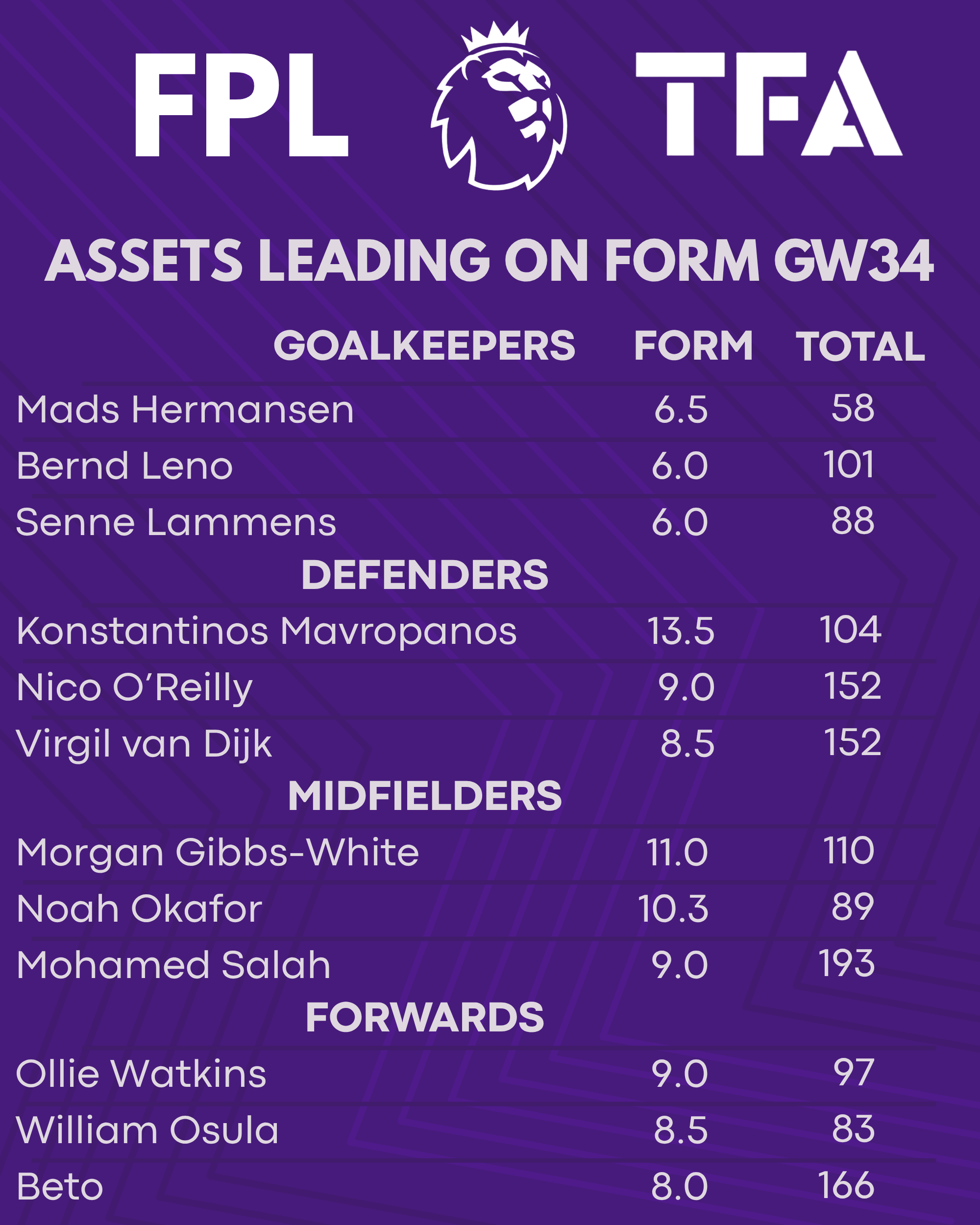 Here’s to a successful Gameweek 34!