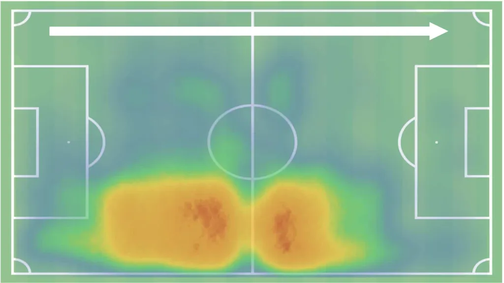 As a naturally right-footed player, Acheampong tends to favour receiving and passing on the right-hand side, and further optimising his comfort with alternative angles could make his distribution even more unpredictable and versatile.