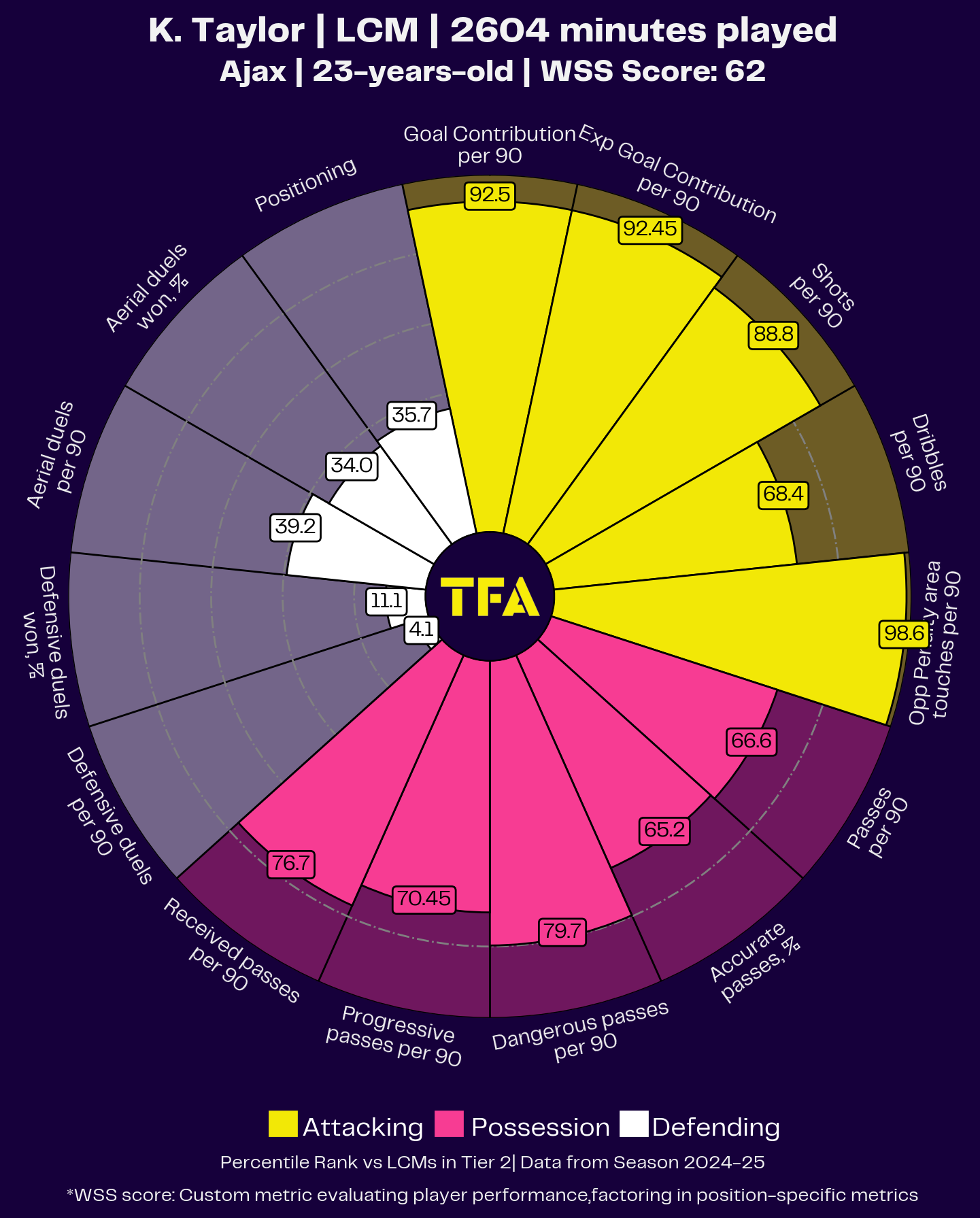 This kind of striker action makes Taylor a very useful attacking midfielder who still has considerable room for improvement, especially in his attacking contribution, given his talent in this regard.