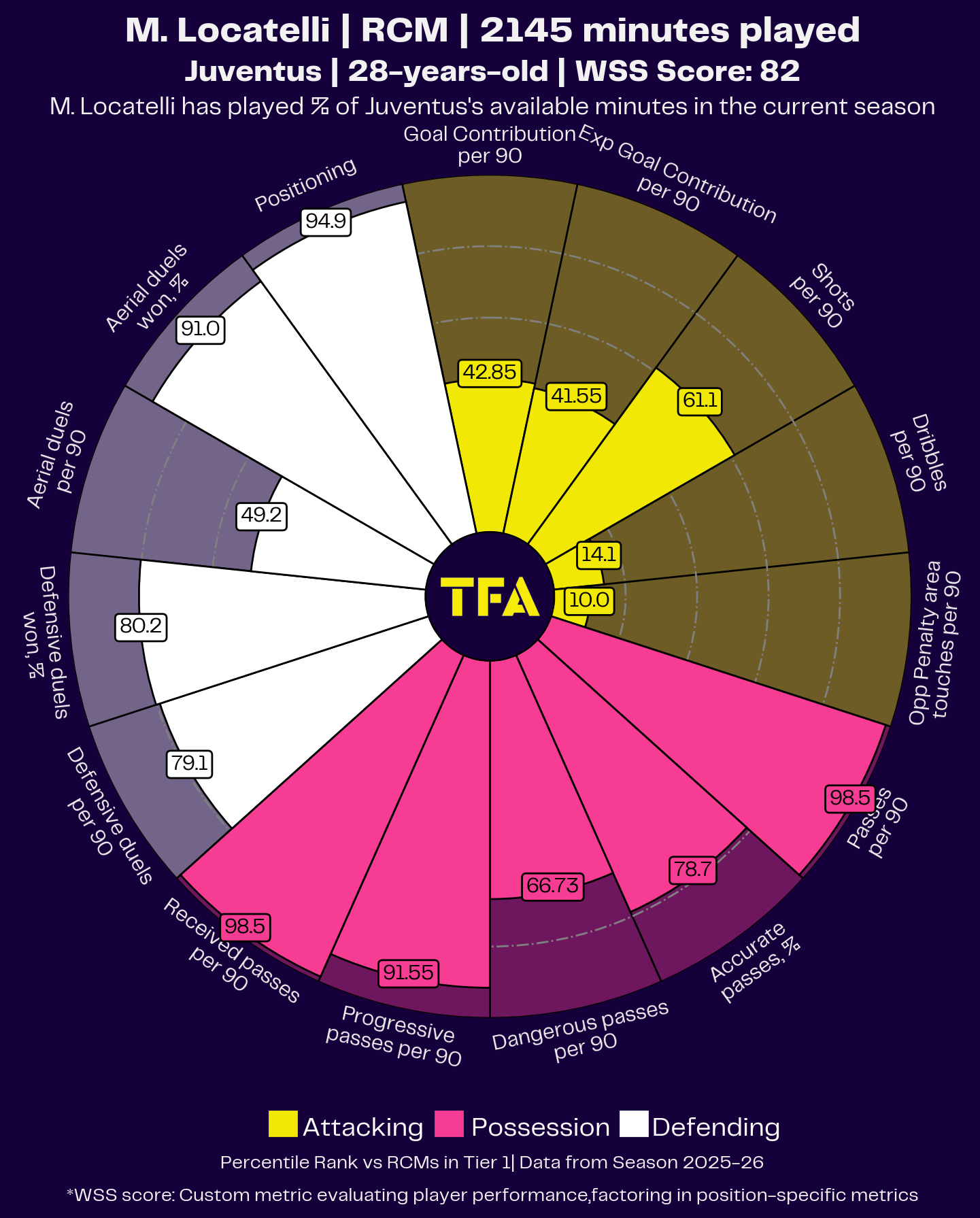 Juventus are a very fun team to watch right now (there have been 17 goals in their last five games), and Locatelli has a huge role to play in this.
