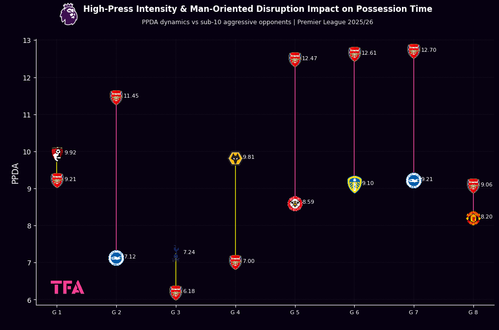 Arsenal PPDA Dynamics Vs Sub-10 Aggressive Opponents - Premier League 2025/2026