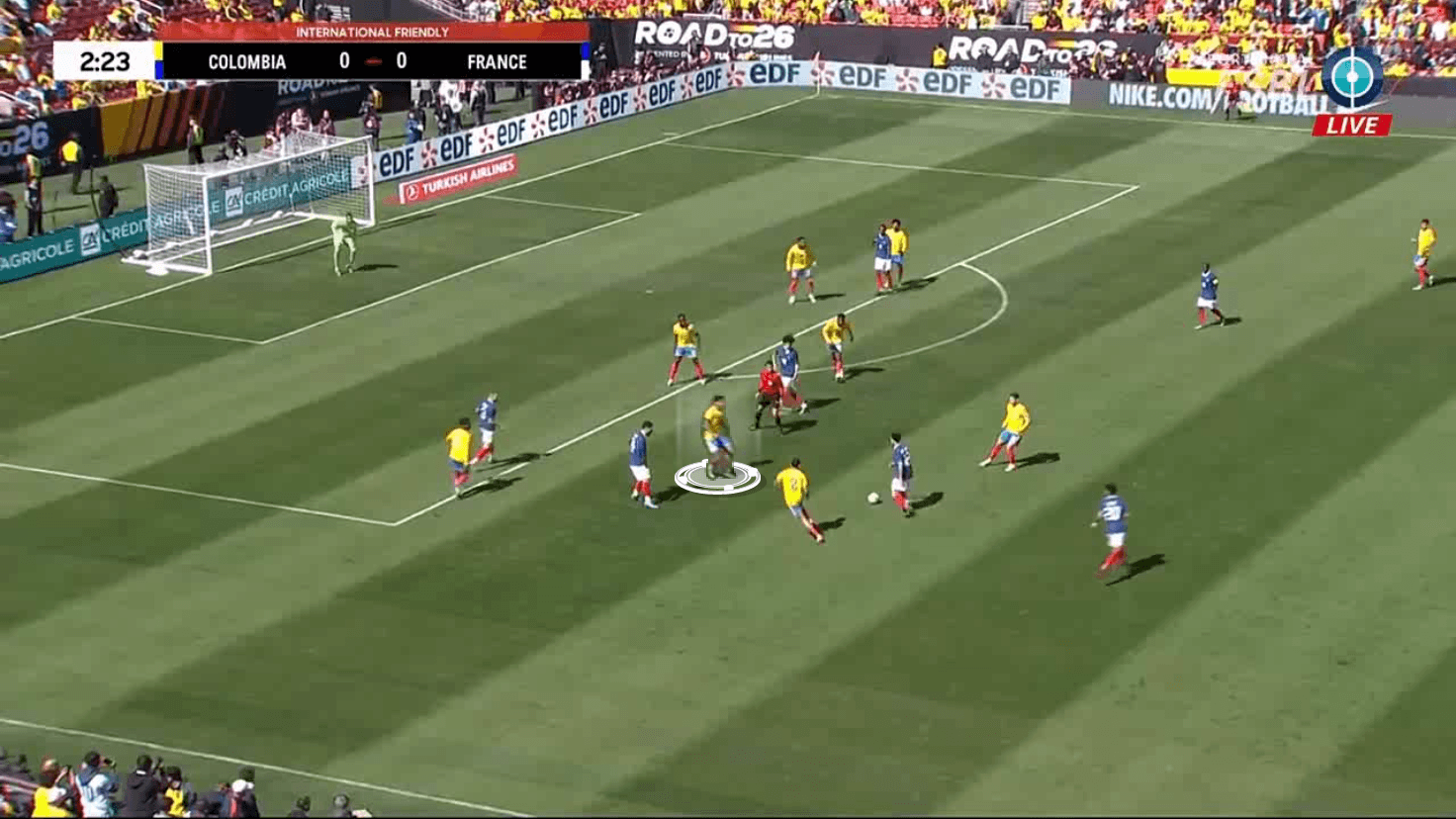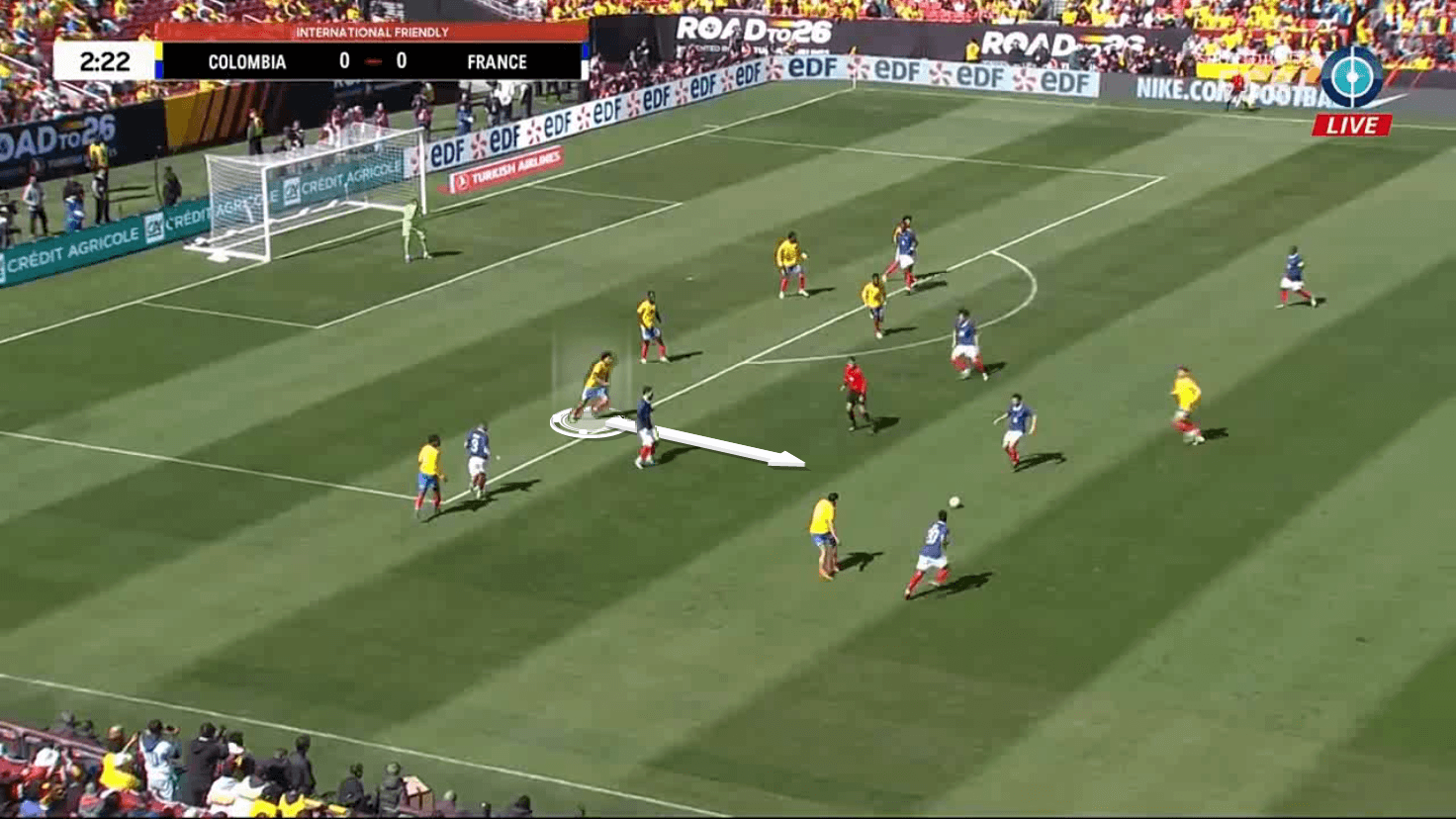 Because he's more of a '6' with Colombia, he's gotten used to defending the top of the penalty box and making movements in and out of the backline to intensify the press.