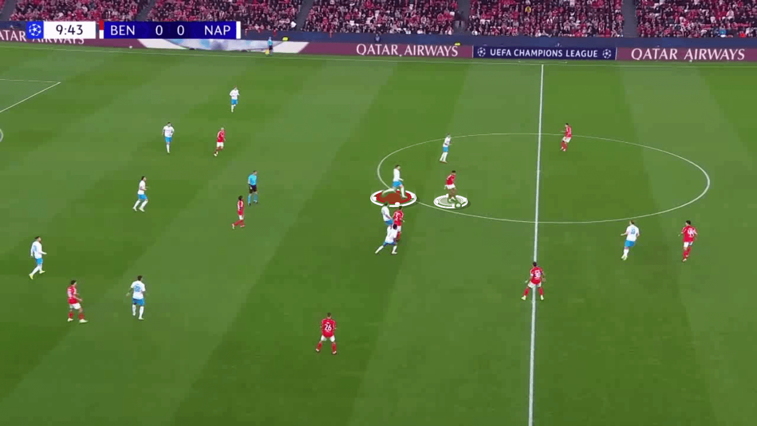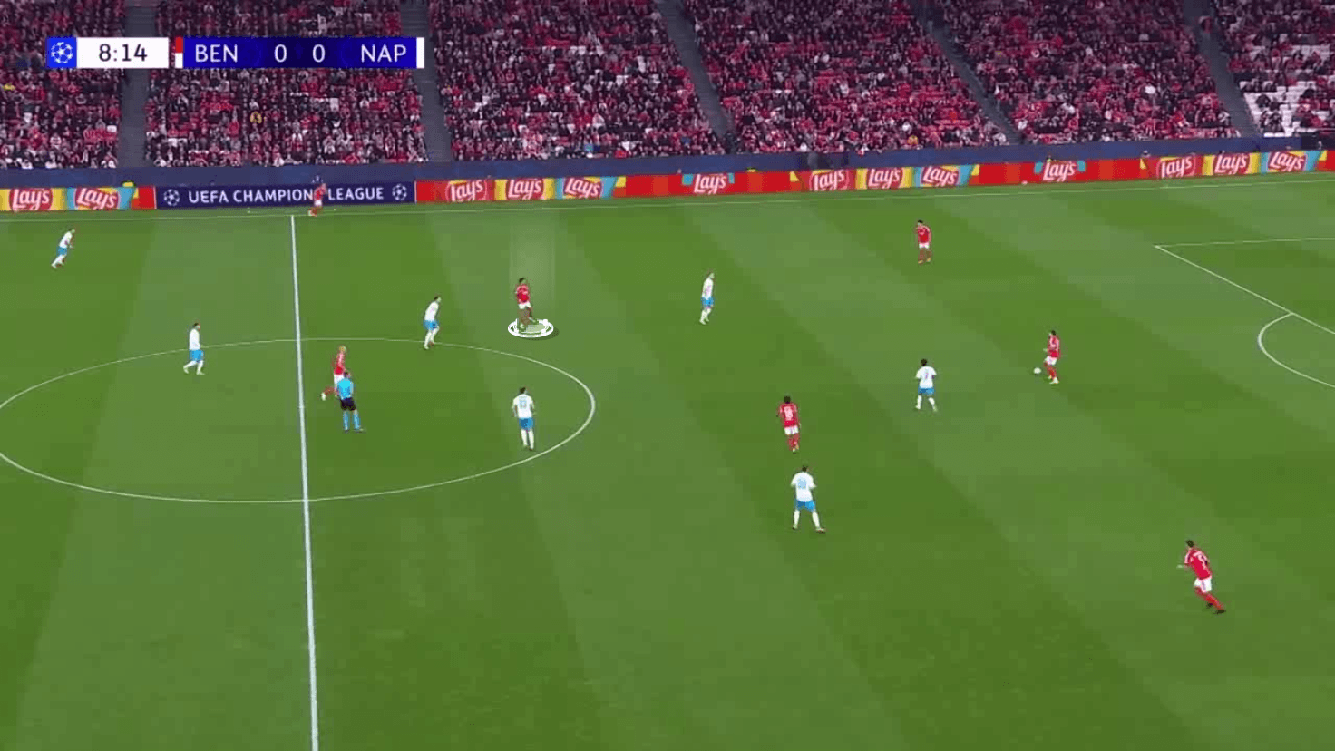 At Benfica, he's playing higher up in the double pivot, tasked with receiving the ball and looking to break into the transition.
