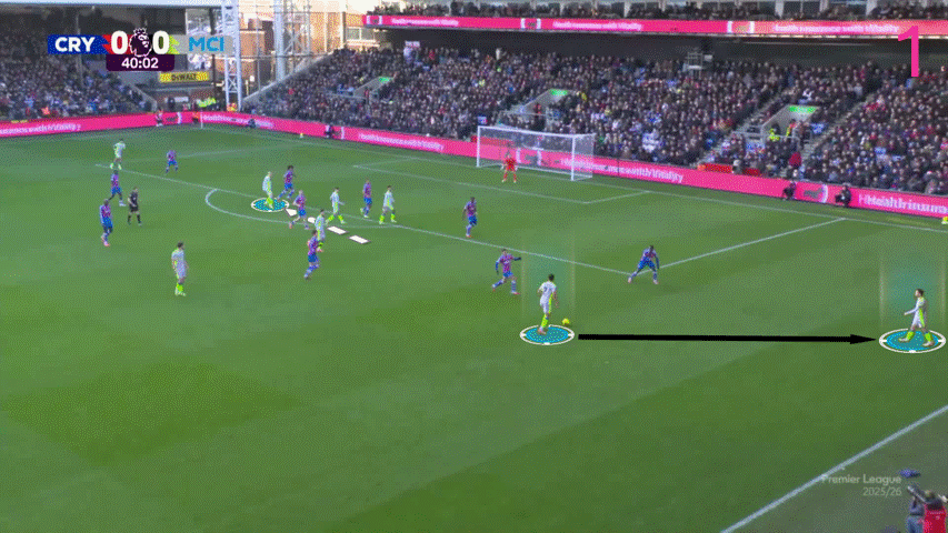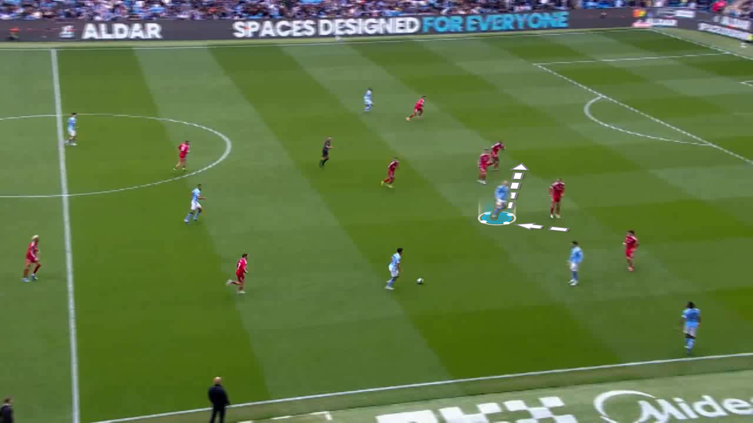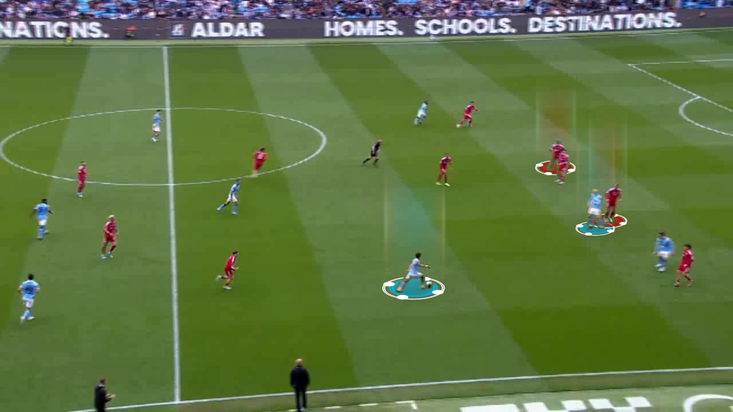 City had initially played down the side of the box but, having been unable to deliver a cross, recycled the ball to the half-space just outside the penalty area.