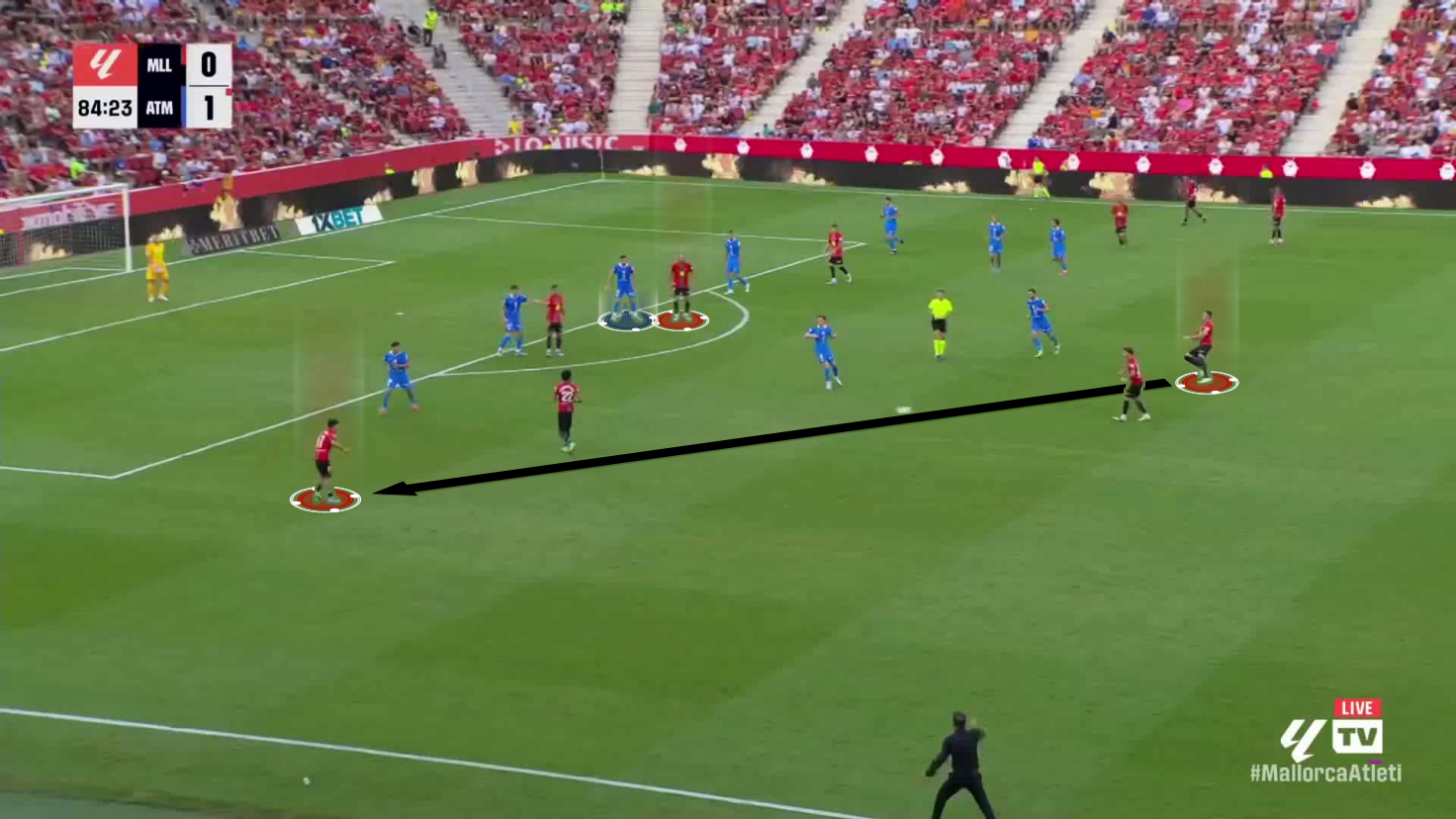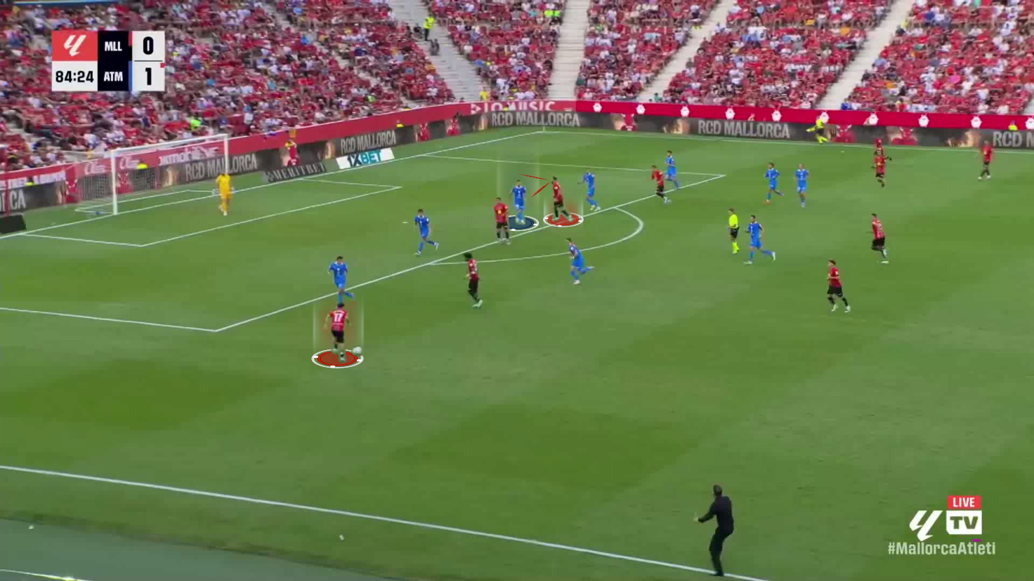 In the image above, from RCD Mallorca’s draw with Atlético Madrid, the 6'4 striker can be seen staying away from the ball as it travels from central midfield to the left wide area.