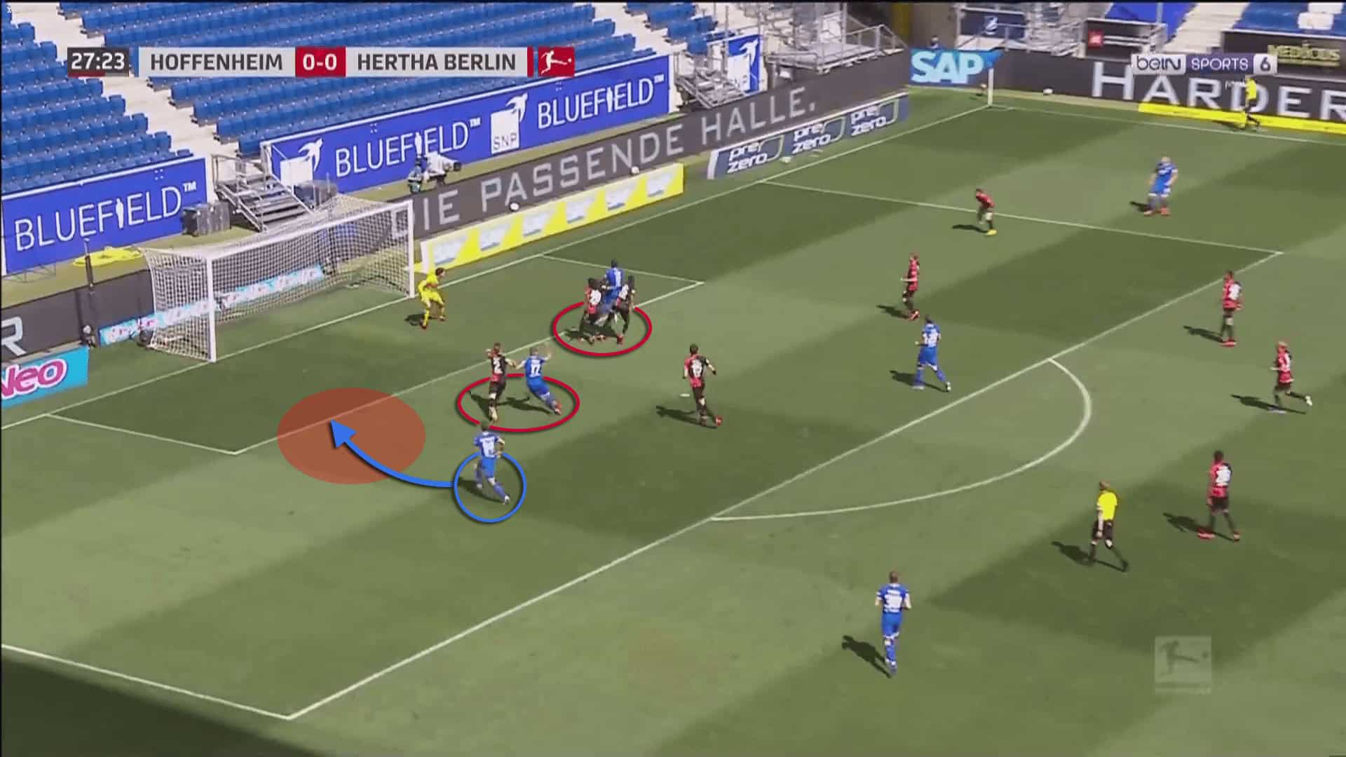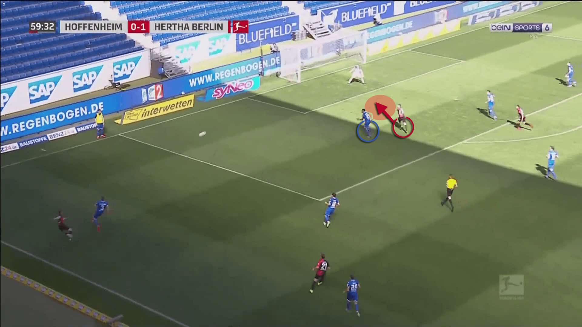 In the image below, we can see how Hoffenheim conceded a goal because their defender failed to maintain the inner line.