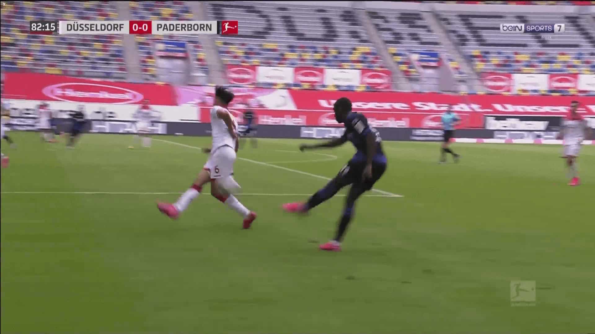 Here, we can see Düsseldorf's defender successfully blocking Paderborn's cross.