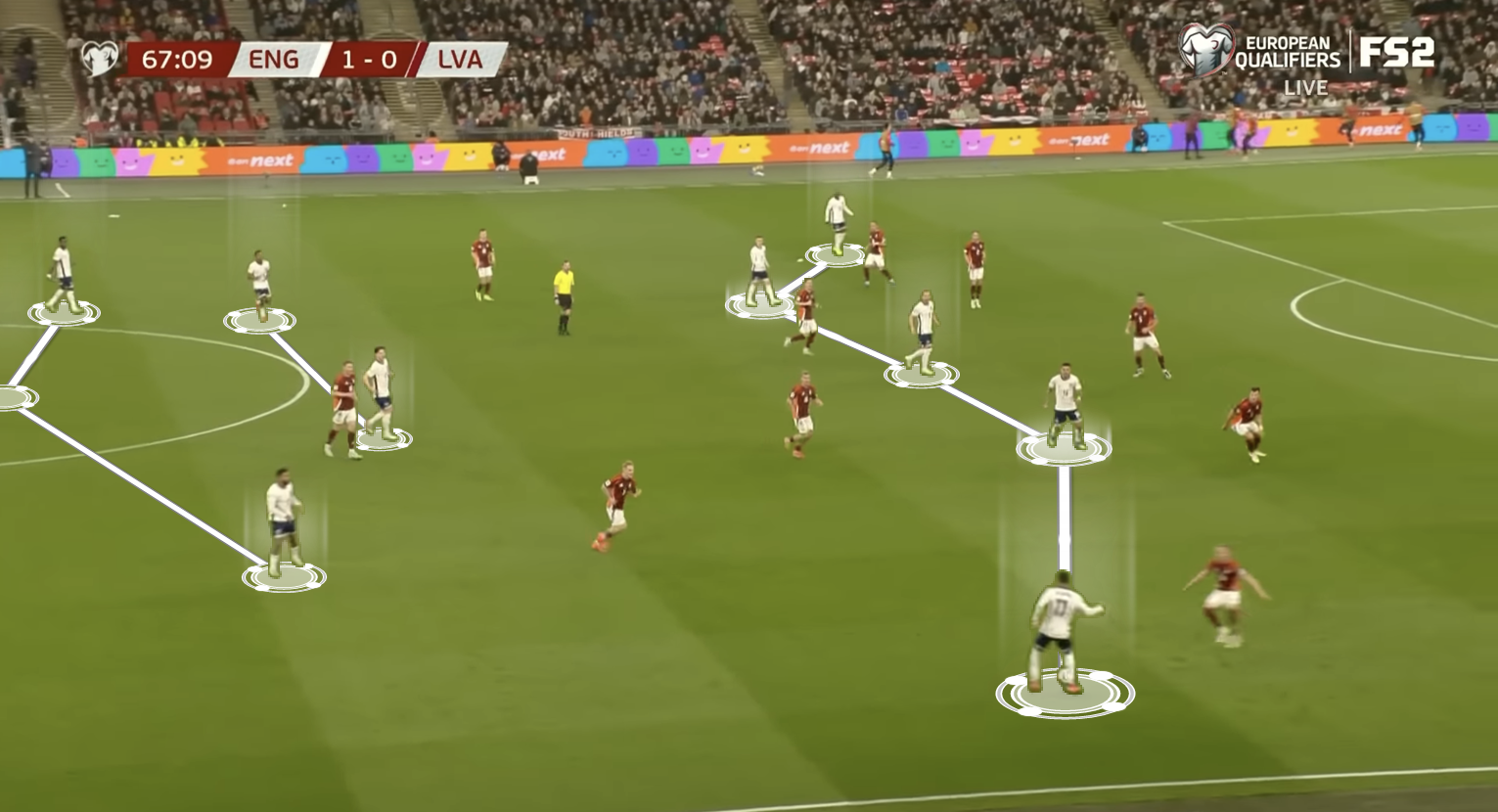 This system, with England’s press-resistant ability on the ball and the versatility of all the players they have on the pitch, creates a big problem for the opposition.