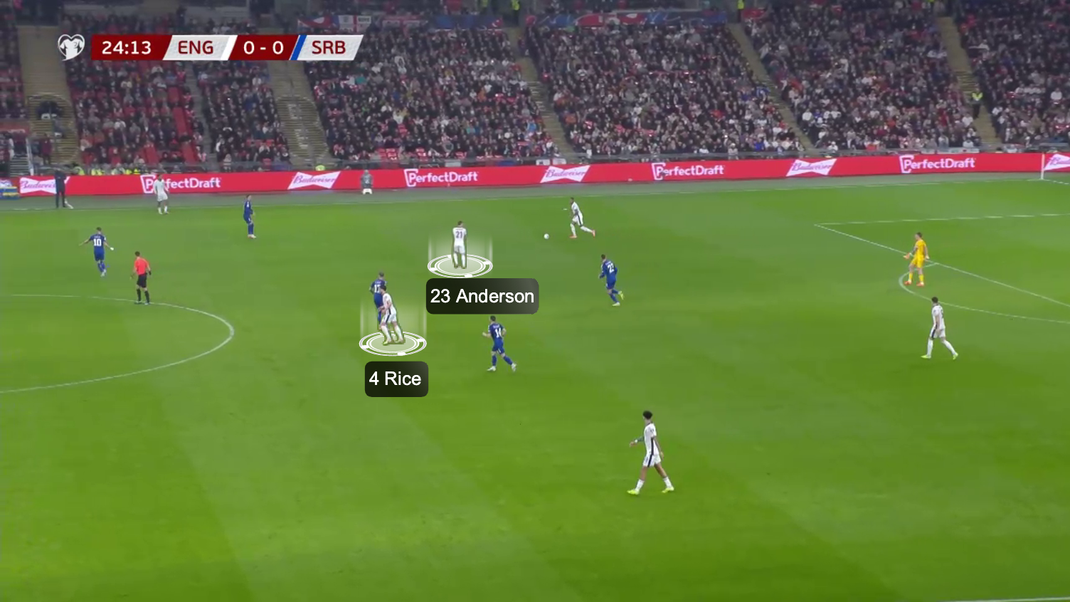 You can see here, against Serbia, they staggered their positions, with Anderson trying to get on the ball to allow Rice to push up further, similar to the benefit Rice has playing alongside Martín Zubimendi at Arsenal.